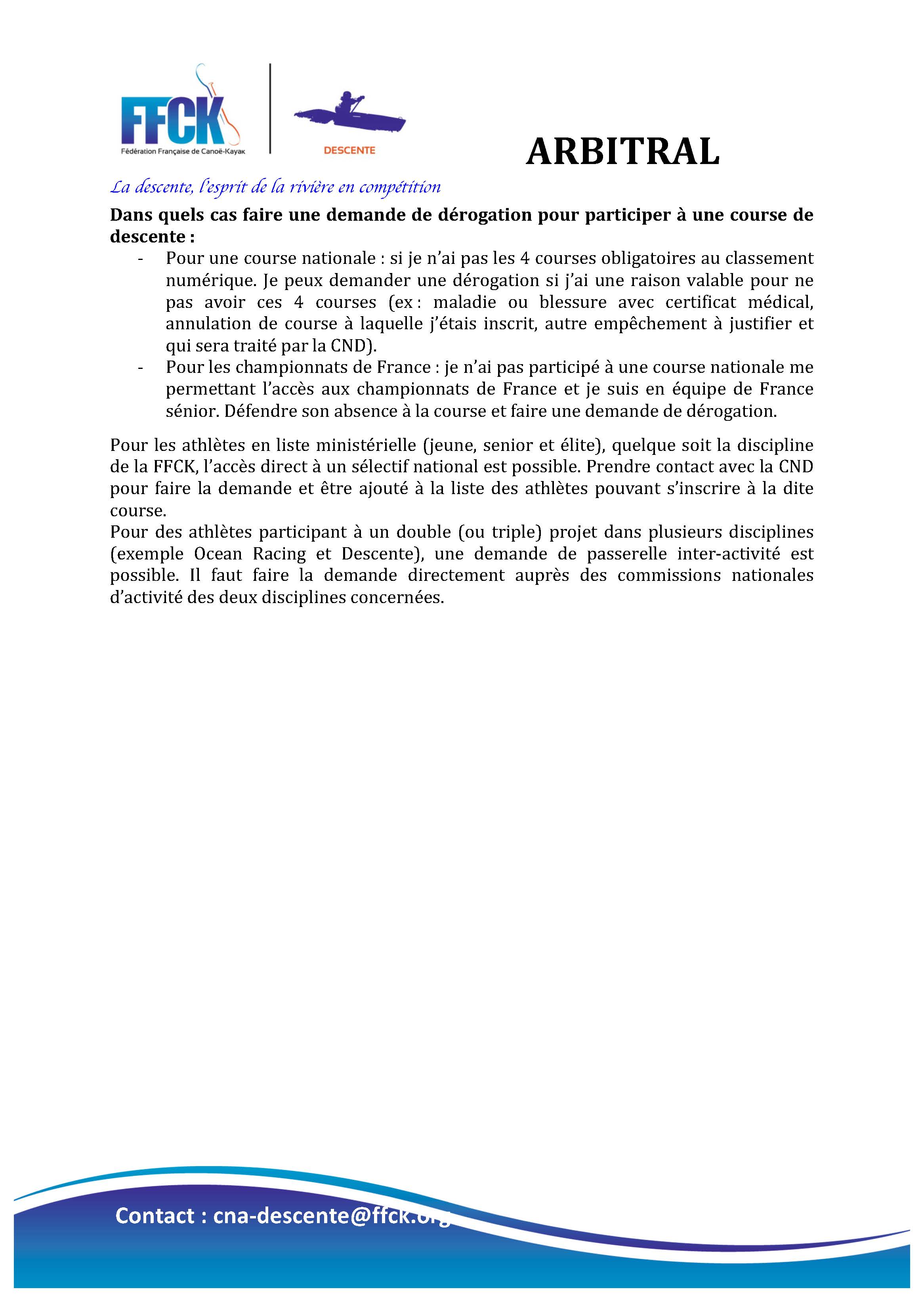 Ici : la newsletter Commission descente nationale.